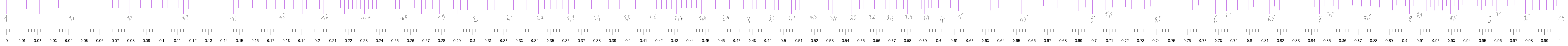 The scales in the middle and at the bottom show the "1" and the "10" relative to the moving part of the slide rule so you can